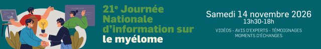 Comme les années précédentes, grâce à la mobilisation des équipes du Dr TOUATI, Chef du Service - Hématologie Clinique et Thérapie Cellulaire du CHU de Limoges, la 21e Journée Nationale du Myélome (JNM) se déroulera le samedi 14 novembre 2026, de 13h30 à 18h dans les locaux la Faculté de Médecine et de Pharmacie - 2 rue du Docteur Marcland - 87000 Limoges.